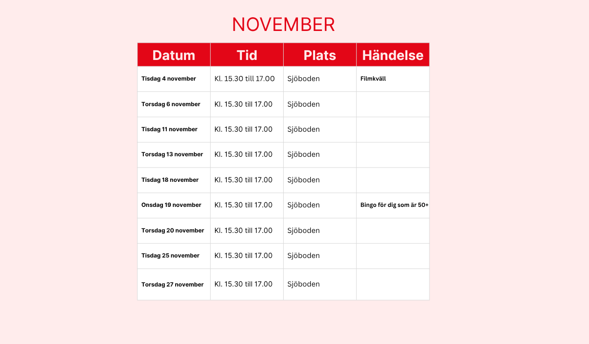Här hittar du fritidsgårdens schema för hösten 2025. Schemat uppdateras löpande med nya händelser så håll koll !