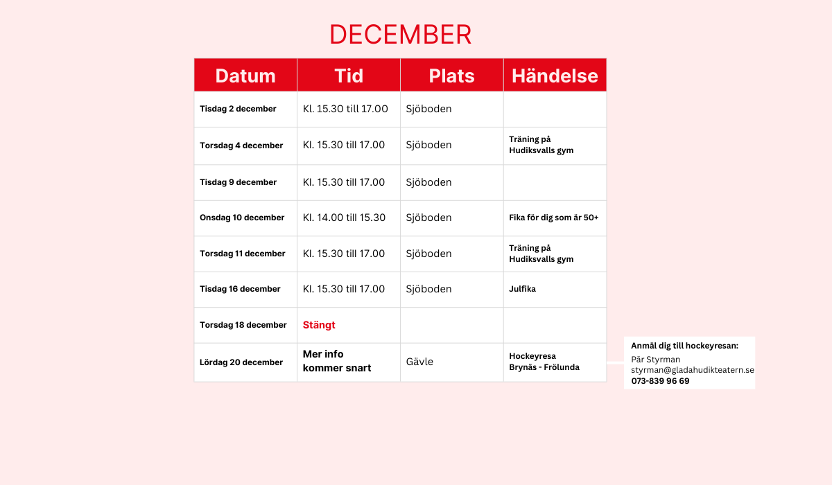 Genom att skapa den här mötesplatsen visar Glada Hudik-teatern att alla, oavsett förutsättningar, har rätt till en aktiv och meningsfull fritid – och att mångfald är en styrka som ska främjas.