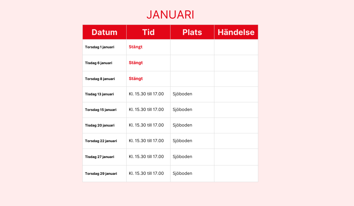 Här hittar du fritidsgårdens schema för 2026. Schemat uppdateras löpande med nya händelser så håll koll !