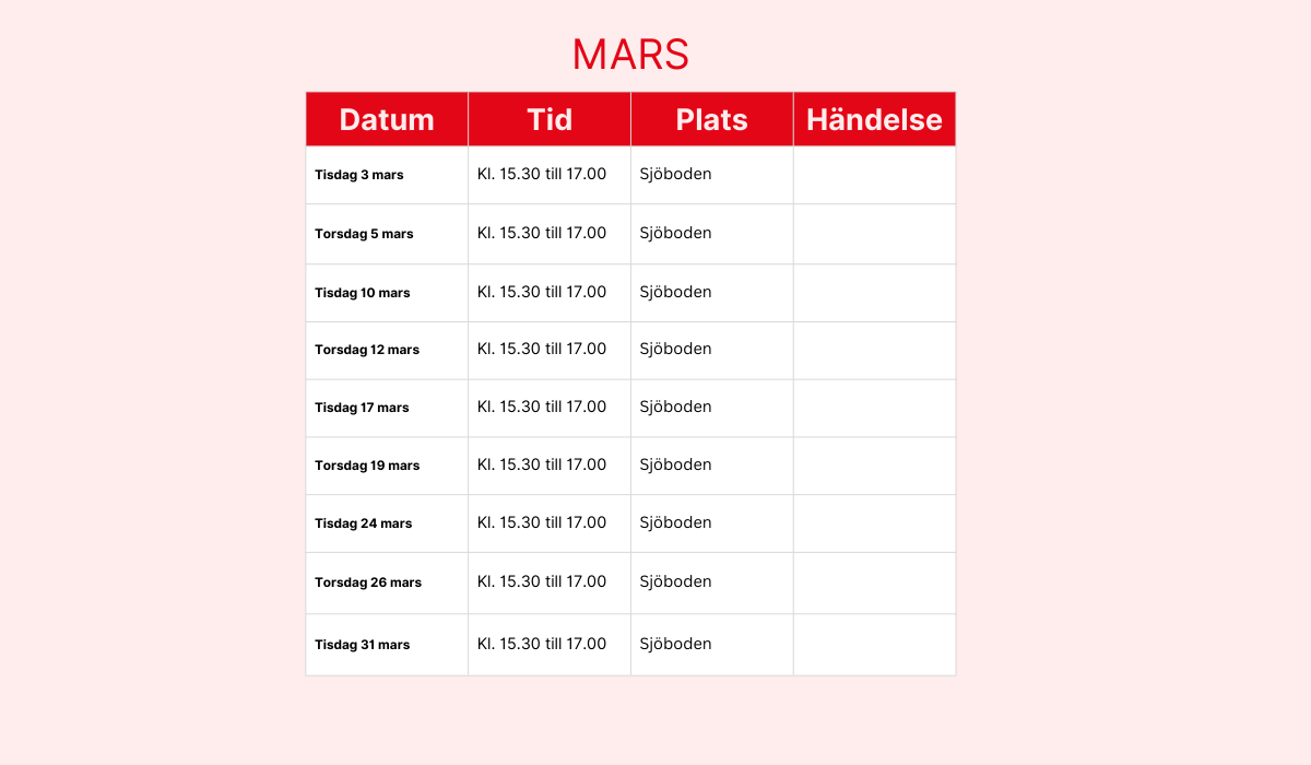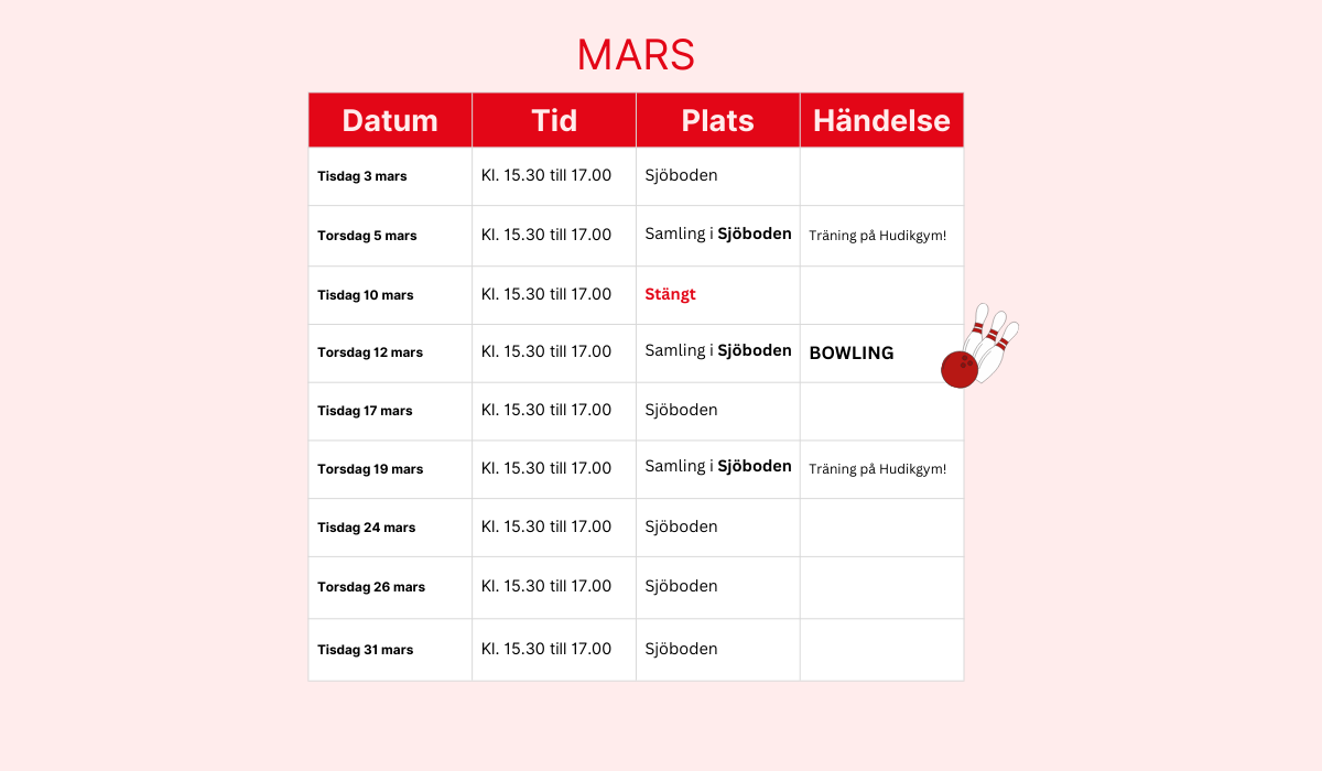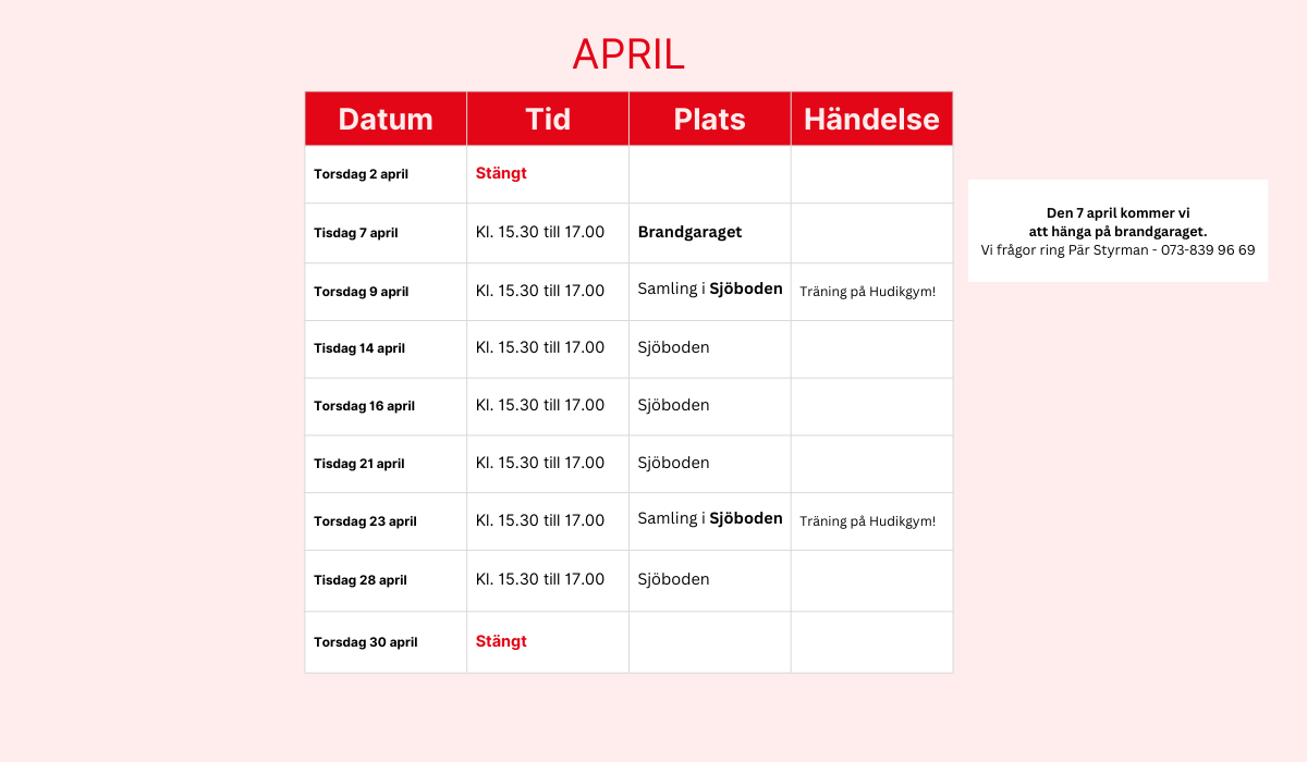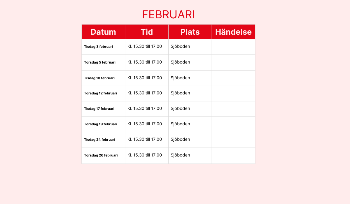 Här hittar du fritidsgårdens schema för 2026. Schemat uppdateras löpande med nya händelser så håll koll !